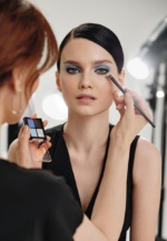 Naneste oční stíny na oční víčka a okraje hladce promíchejte. Nanášejte třpytivé odstíny konečky prstů a vytvořte trendy, orosený efekt. K nanášení matných odstínů použijte kosmetické štětce.