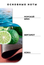 Jasné, jiskřivé tóny sicilského bergamotu a mandarinky s pikantním kořením exotického ovoce jsou uzavřeny v plášti svěžesti mořského vánku. Silné dřevité tóny pačuli, santalového dřeva, dubového mechu, teaku a vetiveru s jemnými nuancemi ambry a lehkým koženým tónem dodávají vůni teplo.